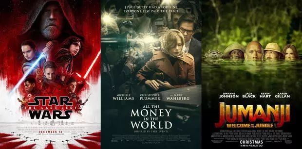 而新片方面,12月25日當天上映的有三部。雷德利·斯科特導演的《金錢世界》將會在超過2000家影院大規模上映;艾倫·索金導演處女作《茉莉的牌局》則在250多家影院小規模開畫;奧斯卡影帝丹尼爾·戴-劉易斯的息影之作《霓裳魅影》只在4家影院做點映。