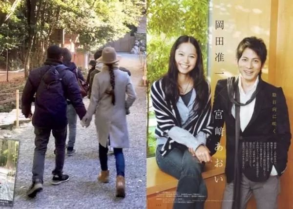 岡田準一大宮崎葵五歲,早在2012年合作歷史片《天地明察》時擦出火花,然而當時宮崎葵尚未與同為演員的丈夫高岡蒼甫離婚。在與丈夫離婚后,二人經常被拍到出雙入對,2016年更被曝出同居照,隨后秀恩愛越發高調,外界普遍認為二人好事將近。