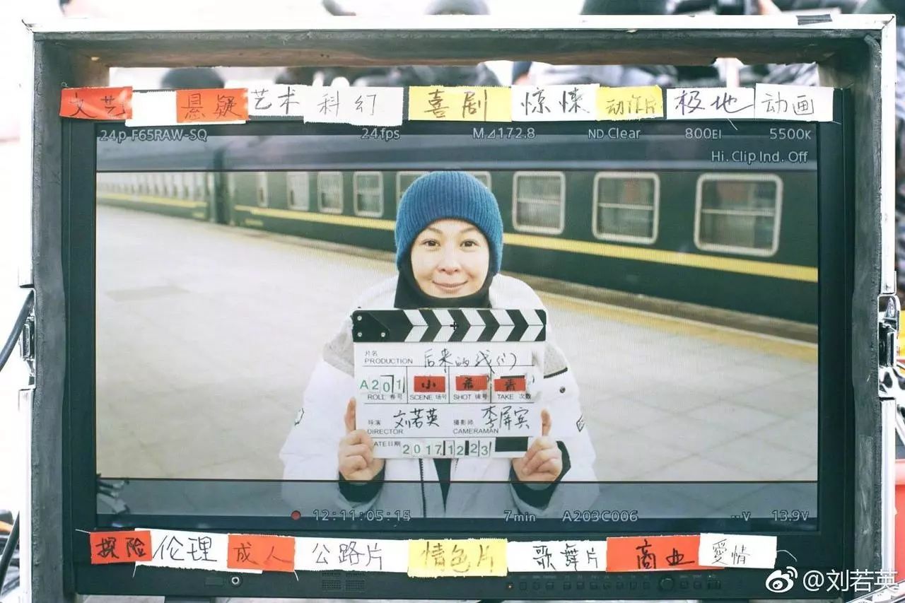 場記板上顯示該片的導演是劉若英,攝影師為李屏賓,還用紅色貼紙著名“小殺青”,日期顯示為2017年12月23日。而另一張好像是對著監視器拍攝的照片,背景是一列綠皮火車,頗具年代感。