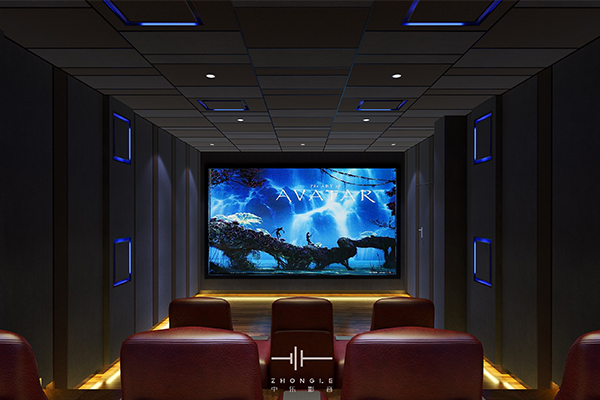 2、合理的吸音處理,吸音的處理和吸音材料的應用上也顯得尤為重要,即使有良好的室內音質設計,如果收到噪音的嚴重干擾,也將破壞整個聽音環境。為了保證室內影片的播放和外界人們正常的生活,我們有必要在室內的噪音上進行聲音的隔斷,相反,控制外界的聲音進入室內,也才能使我們有更好的觀影環境,從而互不干擾。